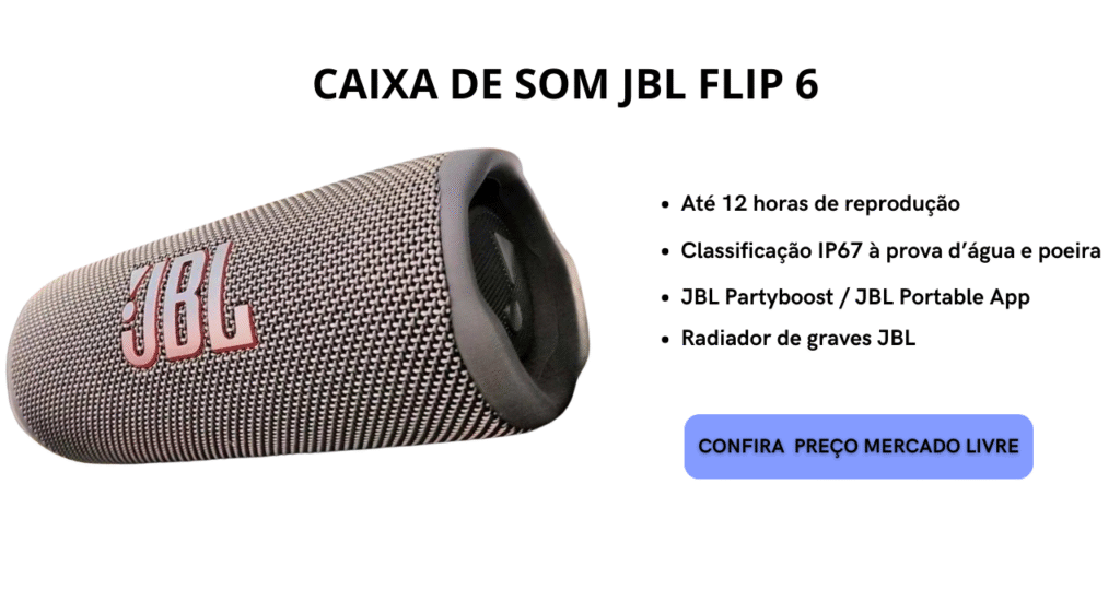 10. Em 2025, ainda vale a pena investir na JBL Flip 6 ou há modelos mais novos que compensam mais? A JBL Flip 6 continua sendo uma excelente opção em 2025 devido à sua combinação de som de alta qualidade, portabilidade, extrema durabilidade (IP67) e a confiabilidade da marca JBL. Embora modelos mais recentes possam surgir com novos recursos, a Flip 6 oferece um pacote muito sólido e testado, muitas vezes com um preço mais competitivo à medida que se consolida no mercado. Se suas características atendem às suas necessidades, ela é, sem dúvida, um ótimo investimento.